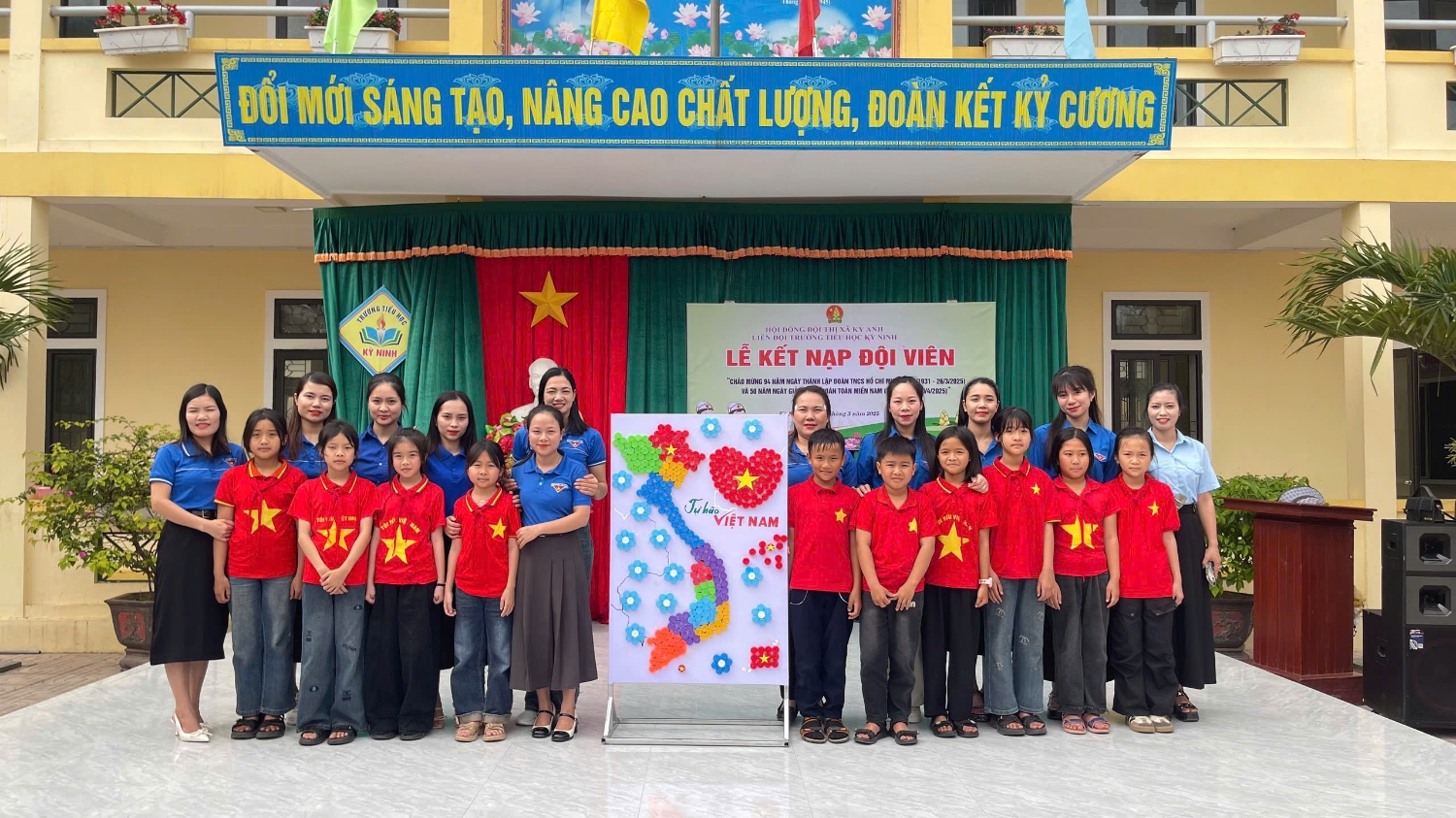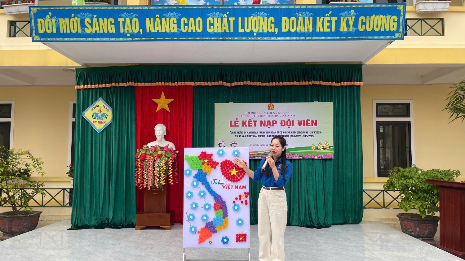 Thực hiện Cuộc vận động “Tự hào một dải non sông”, Liên đội Trường Tiểu học Kỳ Ninh kết hợp Đoàn thanh niên giới thiệu đến các em học sinh bản đồ Việt Nam. Bản đồ được thực hiện bằng nắp chai nhựa với mục đích Giáo dục lòng yêu nước, tự hào tự hào dân tộc và cách sáng tạo sử dụng đồ tái chế trong việc thực hiện cho các em đội viên, sao nhi đồng, tiến tới phát động phong trào "Lớp em treo ảnh Bản đồ Việt Nam ". Đây là hoạt động thiết thực nhằm giáo dục các em biết bảo vệ , giữ gìn về toàn vẹn lãnh thổ Việt Nam. lòng yêu tổ quốc, tự hào về quê hương.