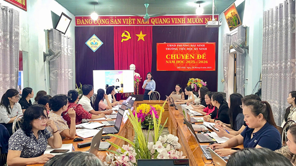 Nâng cao hiệu quả dạy học Tiếng Việt và giới thiệu bộ sách GDKN số do cô giáo Trần Thị Thu Hiền đã chia sẽ các phương pháp dạy học tích cực trong môn Tiếng Việt; hướng dẫn giáo viên định hướng các nội dung tích hợp kĩ năng số vào các môn học từ lớp 1 đến lớp 5.