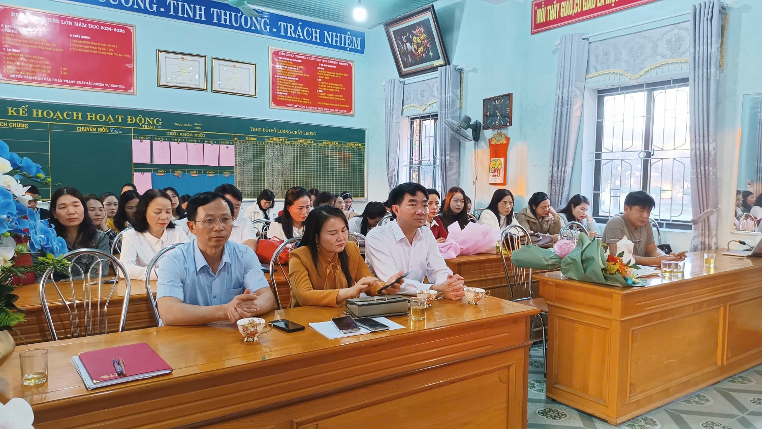 Về dự hội nghị sơ kết học kỳ 1 với tập thể nhà trường có cô giáo Nguyễn Thị Tường Vân - Trưởng PGD&ĐT thị xã Kỳ Anh, thầy giáo Võ Nguyên Hà - P. Trưởng PGD&ĐT thị xã Kỳ Anh cùng các đồng chí là cán bộ giáo viên, nhân viên của trương TH Kỳ Ninh cũng về tham dự đầy đủ.