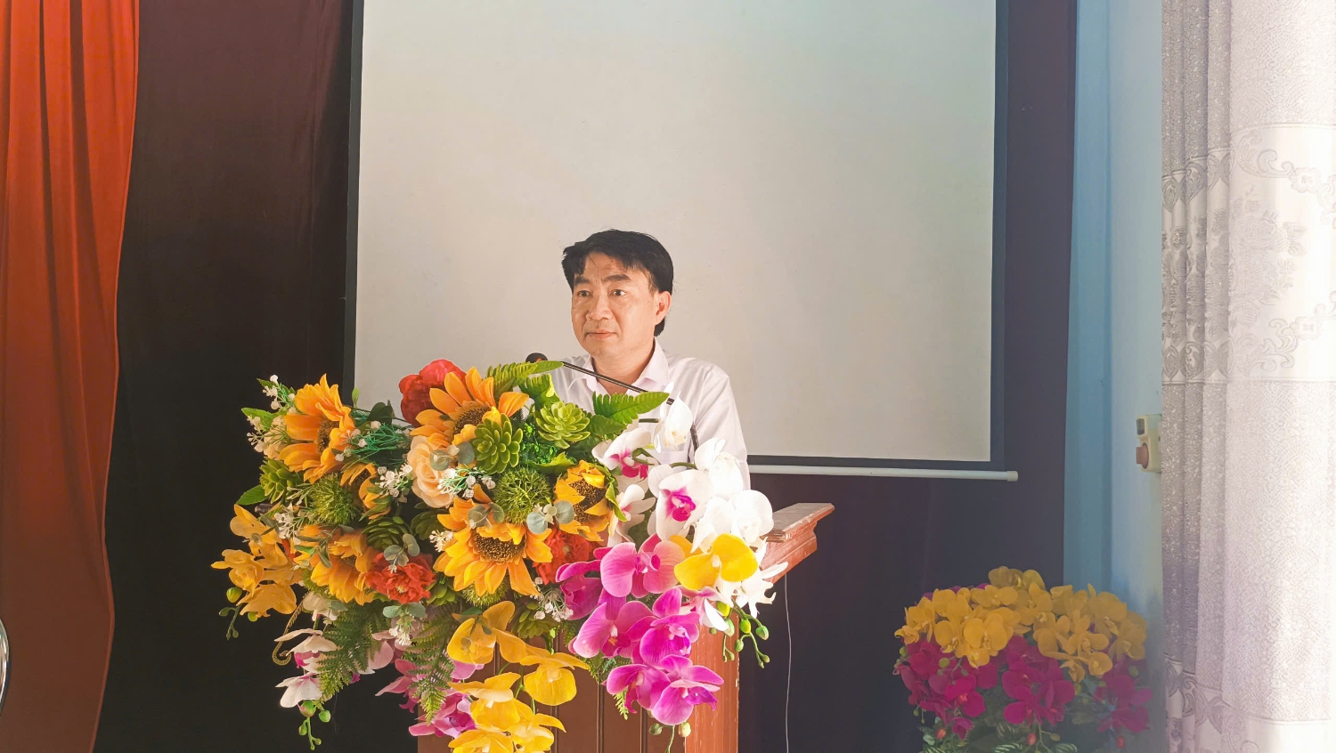 Thầy giáo Trương Công Sơn - Bí thư chi bộ - Hiệu trưởng nhà trường cũng đã nhìn nhận và đánh giá những mặt ưu điểm đã làm được của tập thể nhà trường trong học kỳ 1 vừa qua và những mặt còn hạn chế và sẽ có hướng khắc phục trong thời gian tới.