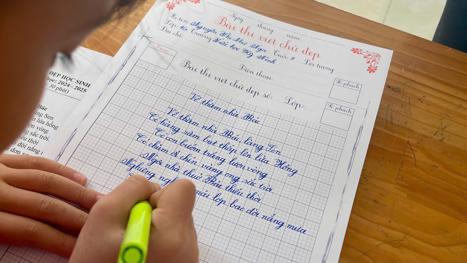 Tại cuộc thi này có 125 em học sinh tiêu biểu đại diện cho các khối 1, 2, 3, 4, 5, các em là những “nghệ sĩ chữ viết” nhỏ tuổi – đã tạo nên một không gian thi đua đầy sôi nổi và đầy háo hức, những bàn tay bé nhỏ miệt mài nắn nót từng nét chữ, từng dòng thơ. Nét chữ như mang theo cả tâm hồn, sự rèn luyện, kiên trì và cả tình yêu với con chữ – điều tưởng chừng giản dị nhưng đầy giá trị trong hành trình hình thành nhân cách mỗi học sinh.